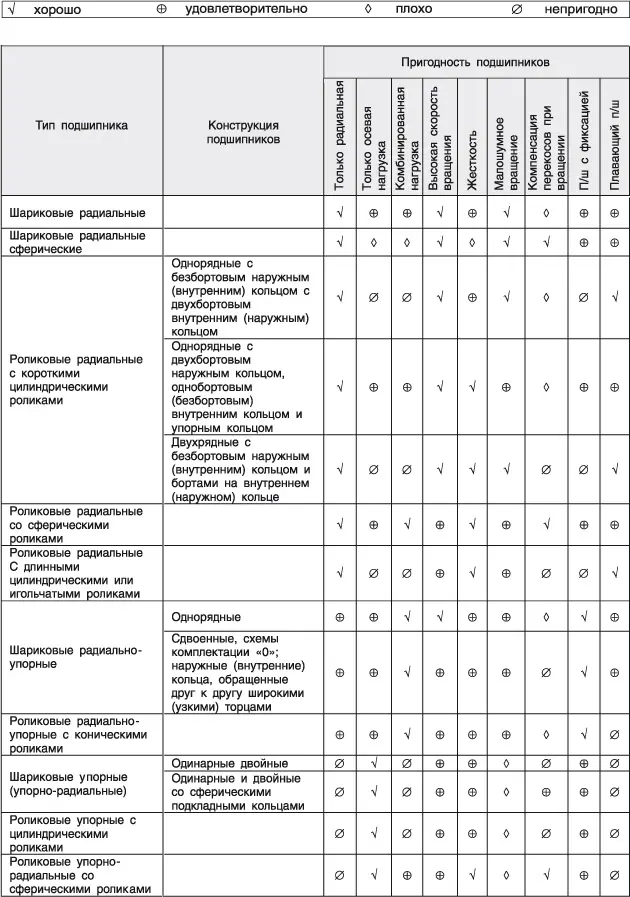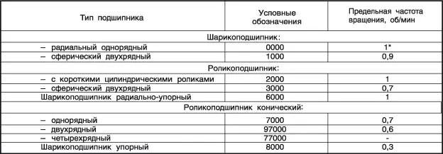 Сравнительные значения быстроходности основных типов подшипников приведены в таблице.